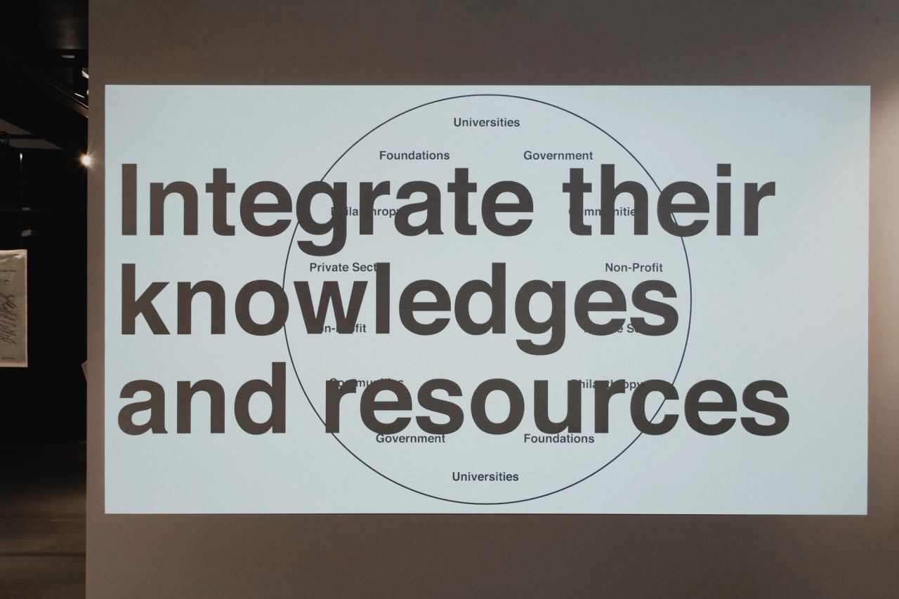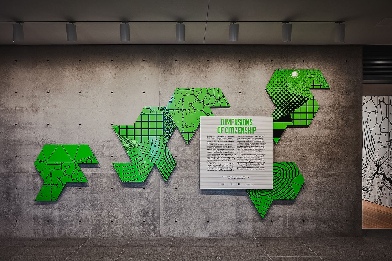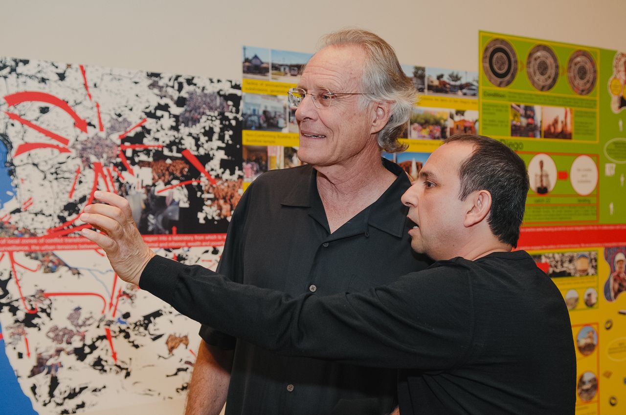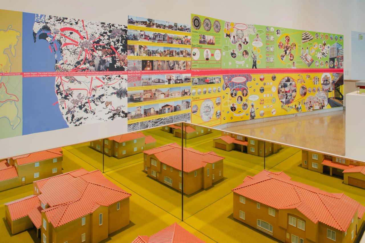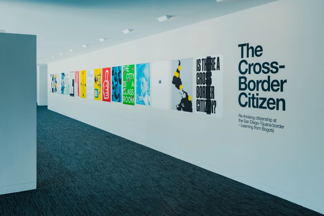 Visualizing Citizenship: Seeking a New Public Imagination exhibited three projects: (1) The Political Equator (2011), a video and wall diagram that captures a collective border-crossing performance through a drainage pipe joining two marginalized neighborhoods along the border wall that divides an informal settlement in Mexico from a natural estuary in California; (2) a series of posters synthesizing the Cross-Border Citizenship Culture Survey (2011–ongoing), the result of a collaboration with Antanas Mockus, the former mayor of Bogotá, Colombia; his think tank, Corpovisionarios; and city officials in San Diego and Tijuana; and (3) The Medellín Diagram (2012–ongoing), which displays a new political and civic model for creating public spaces that facilitate cultural, political, and knowledge exchange based on the example of the city of Medellín and its extraordinary social and urban transformation.
