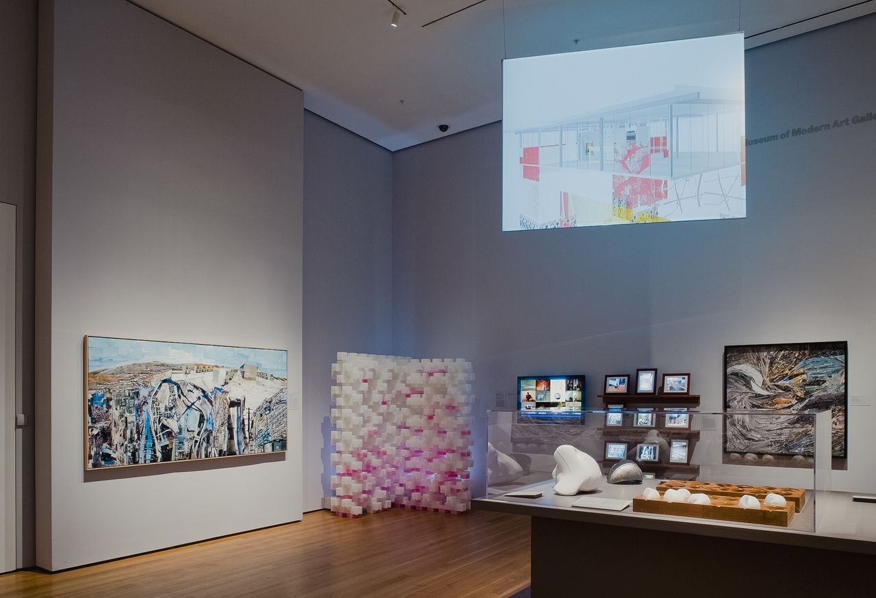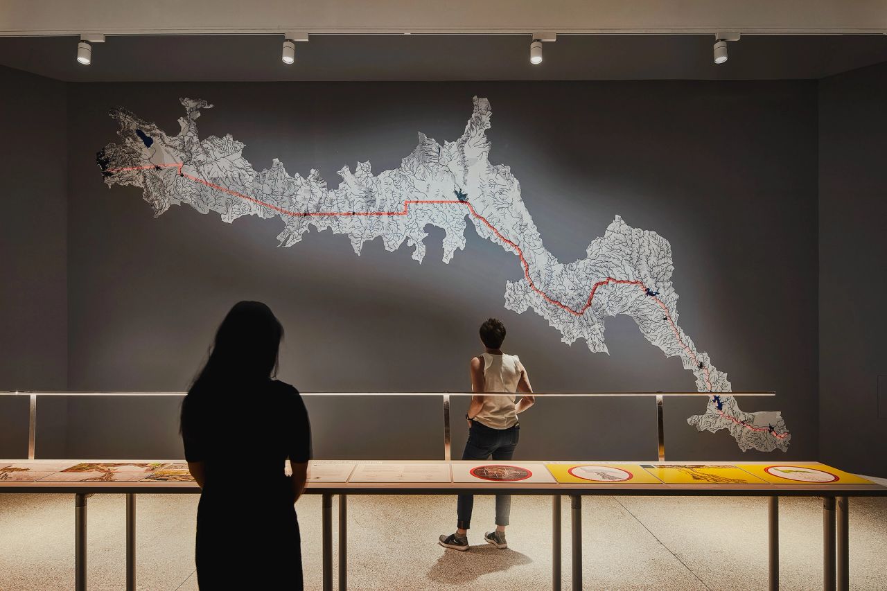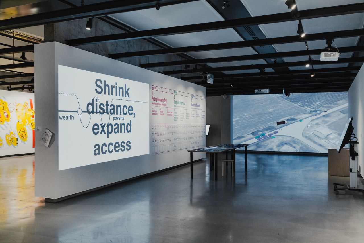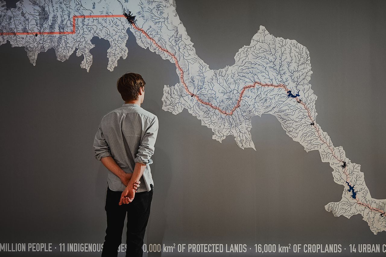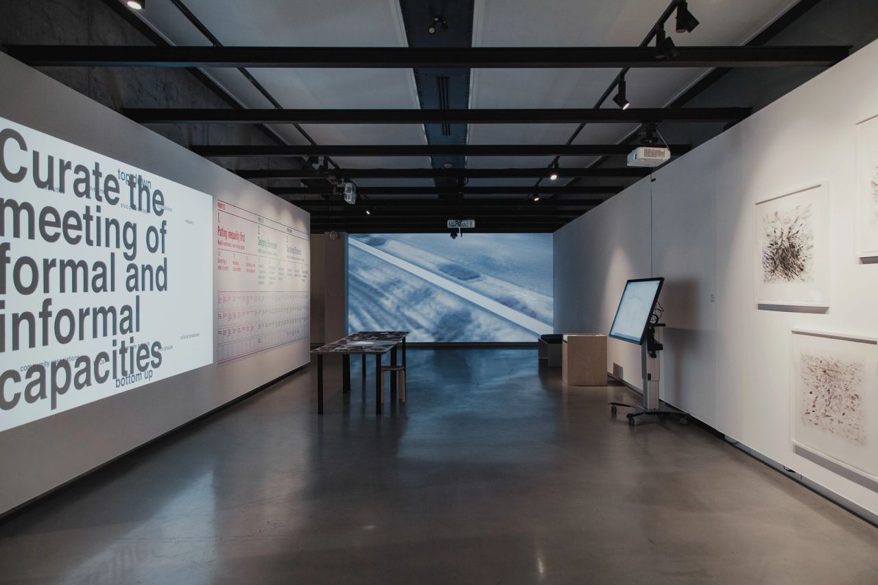 Visualizing Citizenship: Seeking a New Public Imagination exhibited three projects: (1) The Political Equator (2011), a video and wall diagram that captures a collective border-crossing performance through a drainage pipe joining two marginalized neighborhoods along the border wall that divides an informal settlement in Mexico from a natural estuary in California; (2) a series of posters synthesizing the Cross-Border Citizenship Culture Survey (2011–ongoing), the result of a collaboration with Antanas Mockus, the former mayor of Bogotá, Colombia; his think tank, Corpovisionarios; and city officials in San Diego and Tijuana; and (3) The Medellín Diagram (2012–ongoing), which displays a new political and civic model for creating public spaces that facilitate cultural, political, and knowledge exchange based on the example of the city of Medellín and its extraordinary social and urban transformation.