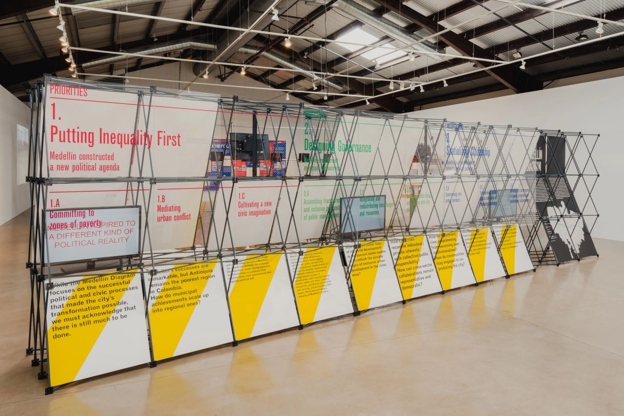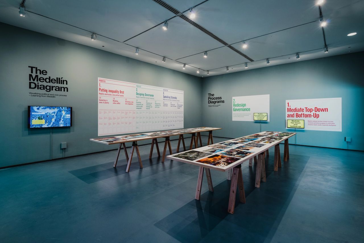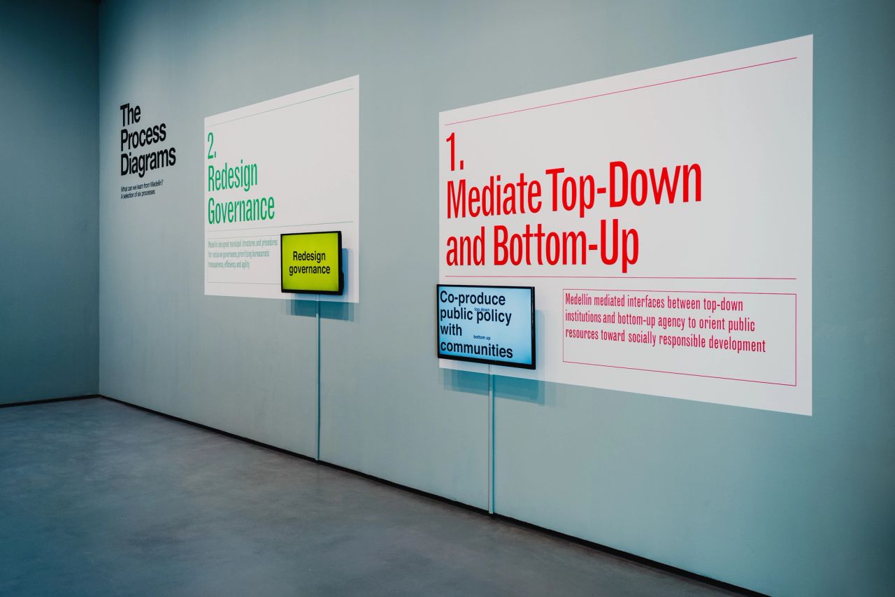 Visualizing Citizenship: The Medellín Diagram was a visualization of the complex civic processes that enabled Medellín’s renowned transformations under Mayor Sergio Fajardo (2003-2007). The diagram presented the changes to Medellín’s architecture and infrastructure as a political project, through which institutions reimagined protocol, collaborated, and confronted socio-economic inequality. The diagram visualized the steps required to improve civic life, build a new political reality, reimagine governance, engage the complexity of process, and sustain all of the above through cooperation with communities over time.