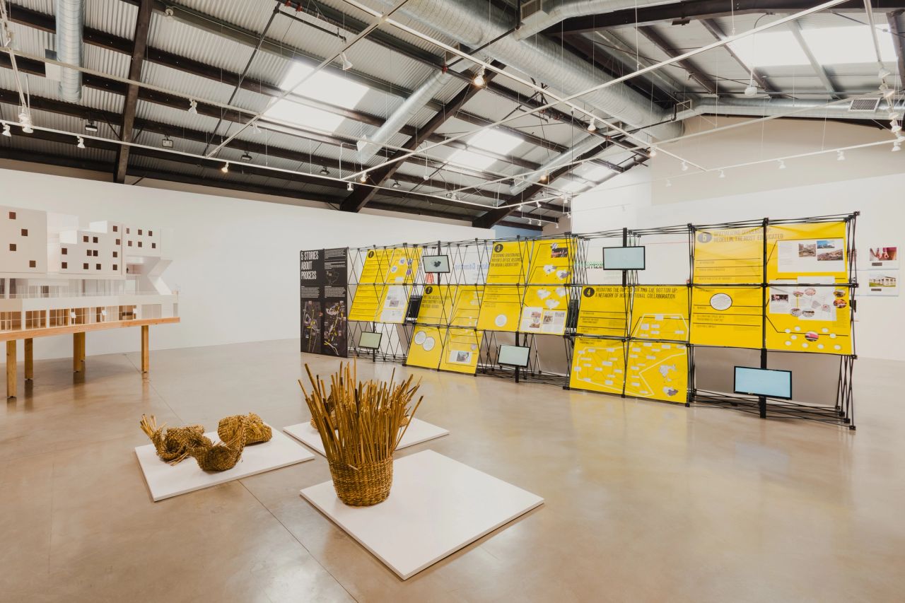 Santuario Frontera displayed the evolving sanctuary neighborhood in Laureles Canyon, an informal settlement in Tijuana impacted by dump sites, drastic erosion, flooding and landslides. Activist pastor Gustavo Banda-Aceves established a refugee shelter for hundreds of migrants. We have partnered to increase emergency housing capacity, embedded in spaces of fabrication, training, and small-scale economic development. Alongside, we are identifying and bundling unsquatted lands in the settlement that are still environmentally rescuable to shape a binational archipelago of conservation—the Cross-Border Commons—linking an estuary in San Diego with the informal settlement in Tijuana. This continuous social and ecological envelope transgresses the wall, and protects the environmental systems shared by these two border cities.