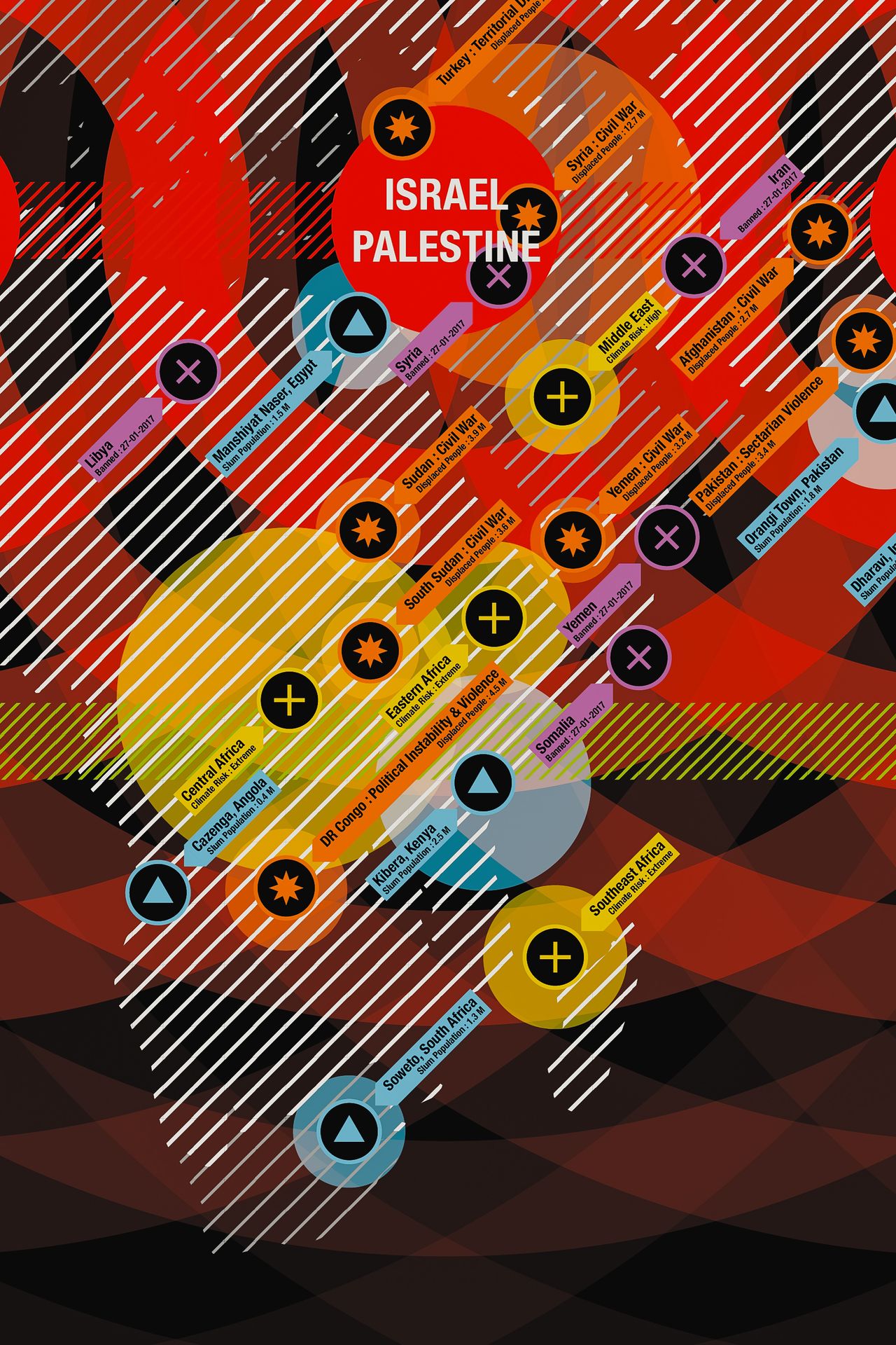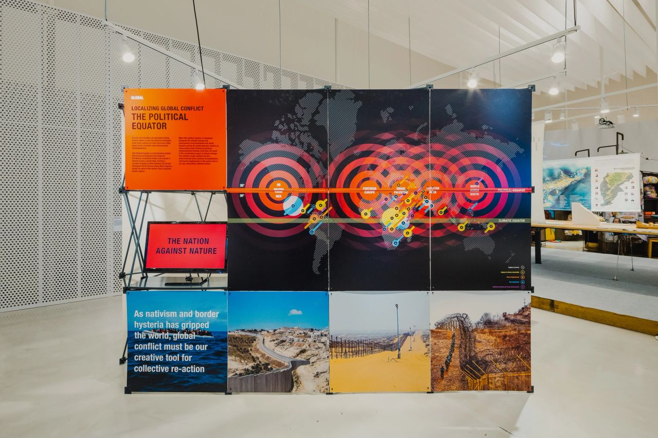 The Political Equator is an experimental visualization project that traces an imaginary line from the Tijuana–San Diego border across a world atlas, between latitudes 30 and 38 degrees North. What emerges is a corridor of global conflict that links some of the world’s most contested thresholds. When the political equator is visualized alongside the climatic equator, the convergence of environmental and social injustice across the world becomes evident. Regions most affected by poverty, political violence, accelerating climate vulnerability and human displacement are situated between these two equators. The exhibition included the territorial scaffold of our practice, a nested ecology that descends in geographic scales from the global border to the neighborhoods that flank the US-Mexico border at San Diego–Tijuana: (1) MEXUS: A Geography of Interdependence, (2) Cross-Border Commons: An Archipelago of Conservation, and (3) Cross-Border Citizens: Border-Drain Crossing.